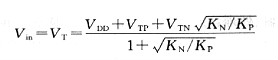 邏輯閾值電壓由于邏輯閾值電壓是式(10 1)中的-IDS與式(10 2)中的IDS相等時的電壓,所以應(yīng)用這個關(guān)系能夠求得Vin:假如KN=Kp,即KN KP=1,經(jīng)