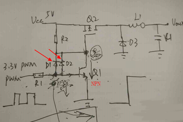 肖特基二極管的鉗位下圖為一個分立器件搭建的BUCK電路,但是不明白圖中的兩個肖特基二極管(D1 D2)的作用是什么8 3 2 肖特基箍位提高晶體